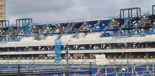 側(cè)看臺的建設(shè)階段預(yù)計還會持續(xù)幾天,如果計劃不變,接下來將會是北看臺的第三層建設(shè),之后是南看臺和主看臺區(qū)域的施工。