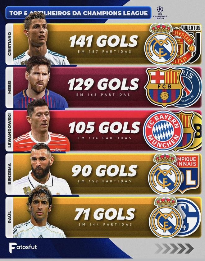 歐冠歷史進球榜前五(數(shù)據(jù)截至北京時間2025年10月2日)