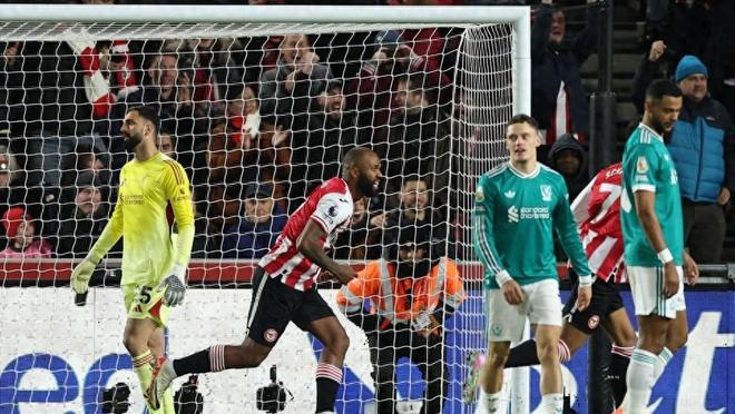 盡管客場2比3不敵布倫特福德,但利物浦的失利并非偶然。比賽開場僅第5分鐘,布倫特福德便用一記教科書般的邊線球戰(zhàn)術(shù)打破僵局——邁克爾·凱奧德投出一記力量十足、精準(zhǔn)制導(dǎo)的邊線球,丹戈·夸塔拉搶在防守球員之前頭球破門,為球隊取得夢幻開局。