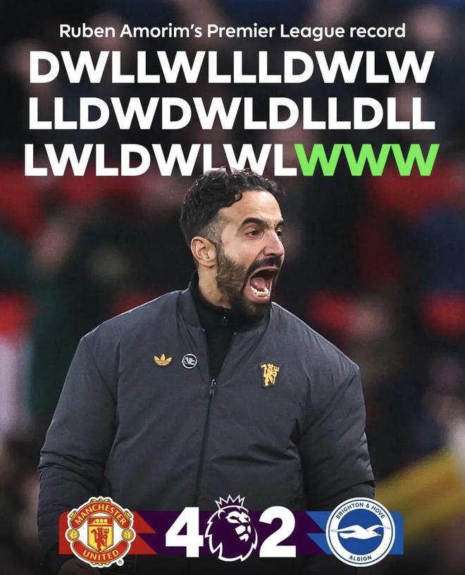 要知道近三個賽季,曼聯(lián)在主場都不敵布萊頓,“海鷗軍團”快要成為“紅魔”的“心魔”!上次在老特拉福德?lián)魯〔既R頓已經(jīng)要追溯到2021-22賽季。而在今天,他們不僅擊敗對手迎來聯(lián)賽三連勝,更是成為了本賽季英超至今主場拿分最多的球隊!除了聯(lián)賽首輪0-1不敵阿森納,曼聯(lián)在隨后4個主場分別戰(zhàn)勝了伯恩利、切爾西、桑德蘭以及布萊頓!這也是他們自2023年8月以來首次主場聯(lián)賽4連勝!