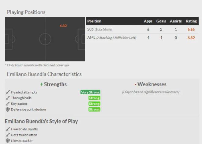 不只是維拉的先發(fā)11人,布恩迪亞也有可能成為勝負手。這名阿根廷中場在之前的一波4場英超和歐戰(zhàn)賽事中,貢獻了3球1助攻。